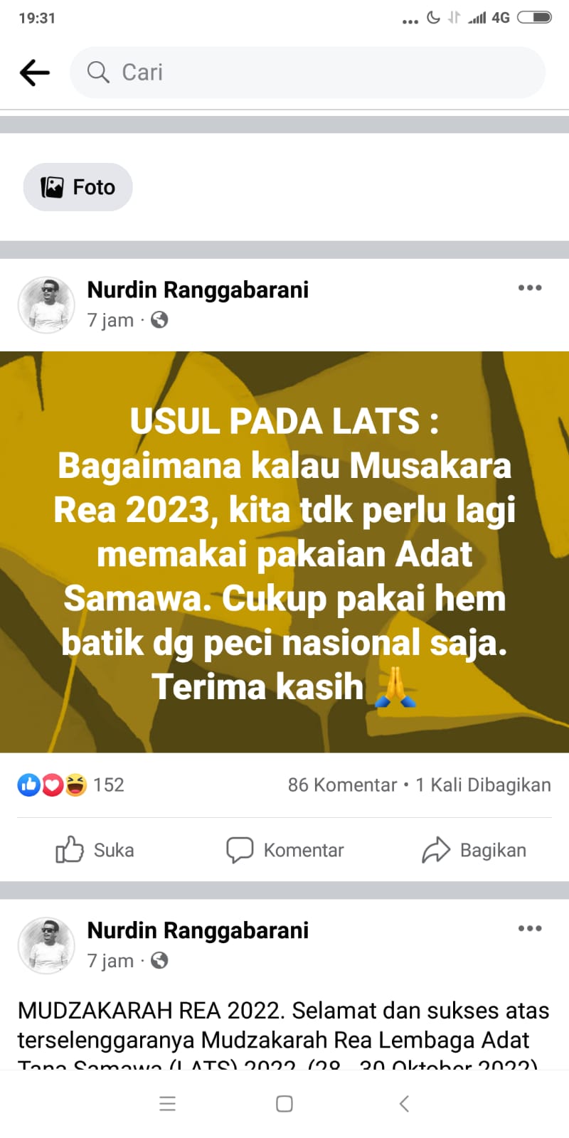 “Usul kepada LATS : Bagaimana kalau Musyakara rea 2023, tidak perlu lagi memakai pakaian adat tanah Samawa. Cukup pakai hem batik dengan peci nasional saja,” tulis Nurdin Ranggabarani dalam laman Facebook nya, yang diunggah sekitar delapan jam lalu.