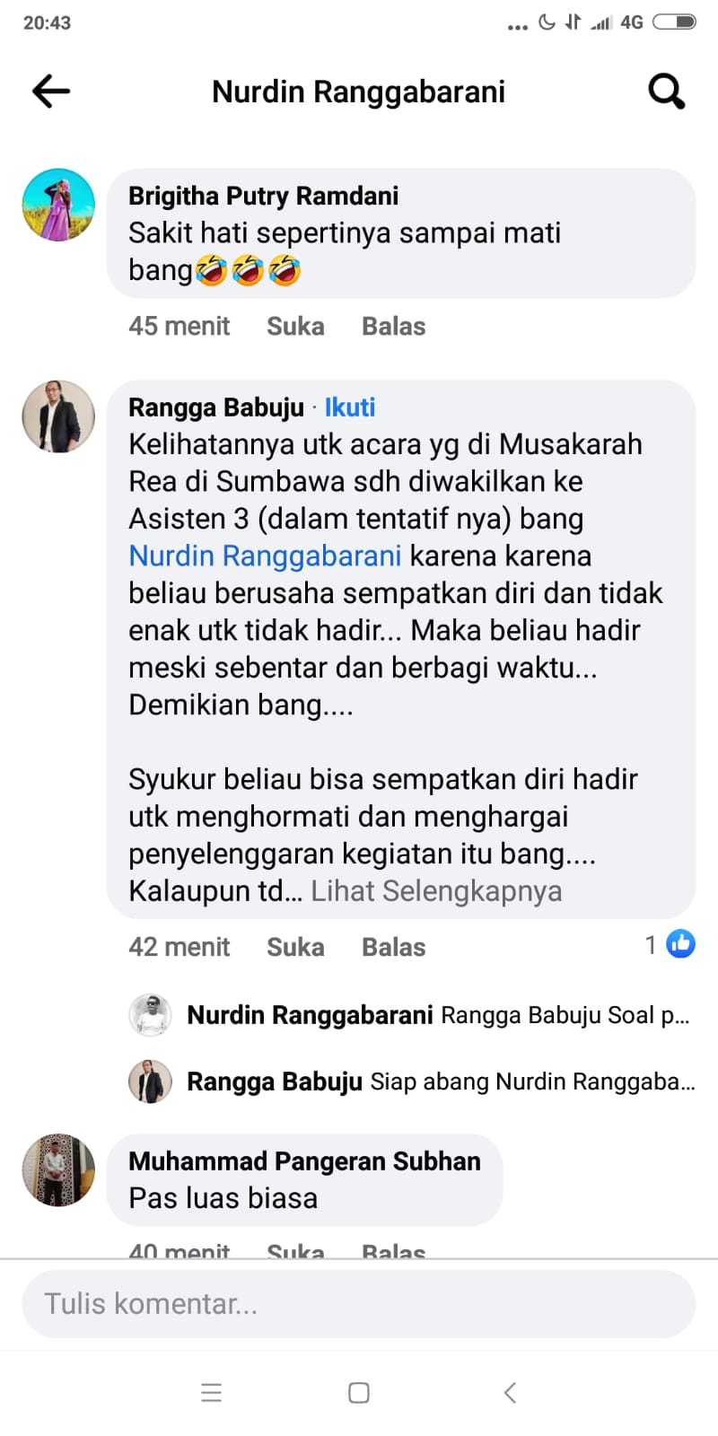 “Bang Nurdin, kalau itu maksud nya ke saya terima kasih masukannya. Karena setahu saya yang pakai Batik dan Kopiah itu saya. Saya dari Mataram malam dan sampai jam 5 pagi di Sumbawa,” ucap Bang Zul, sapaan Gubernur menjawab postingan Nurdin Ranggabarani.
