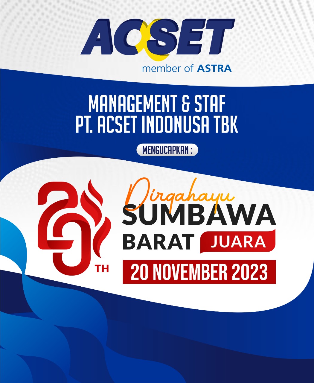 MANAGEMENT DAN STAF PT. ACSET INDONUSA TBK MENGUCAPAKAN SELAMAT HARI LAHIR KSB KE-20 TAHUN.