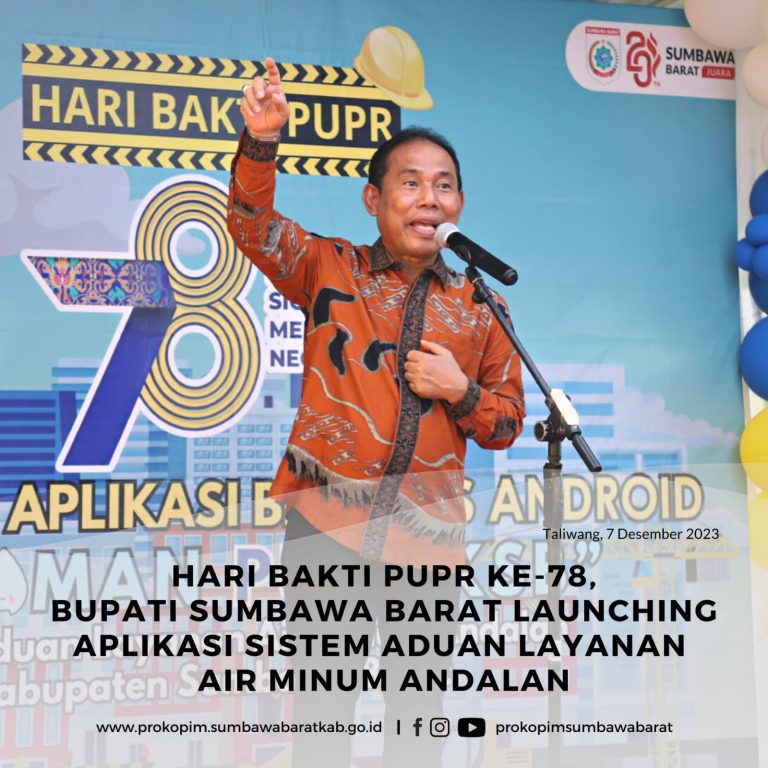 ZONAMERAHNEWS.NET, Sumbawa Barat – Pemerintah Kabupaten Sumbawa Barat launching Aplikasi Sistem Aduan Layanan Air Minum Andalan di acara Hari Bhakti PU ke 78, Kamis kemarin (7/12/2023).