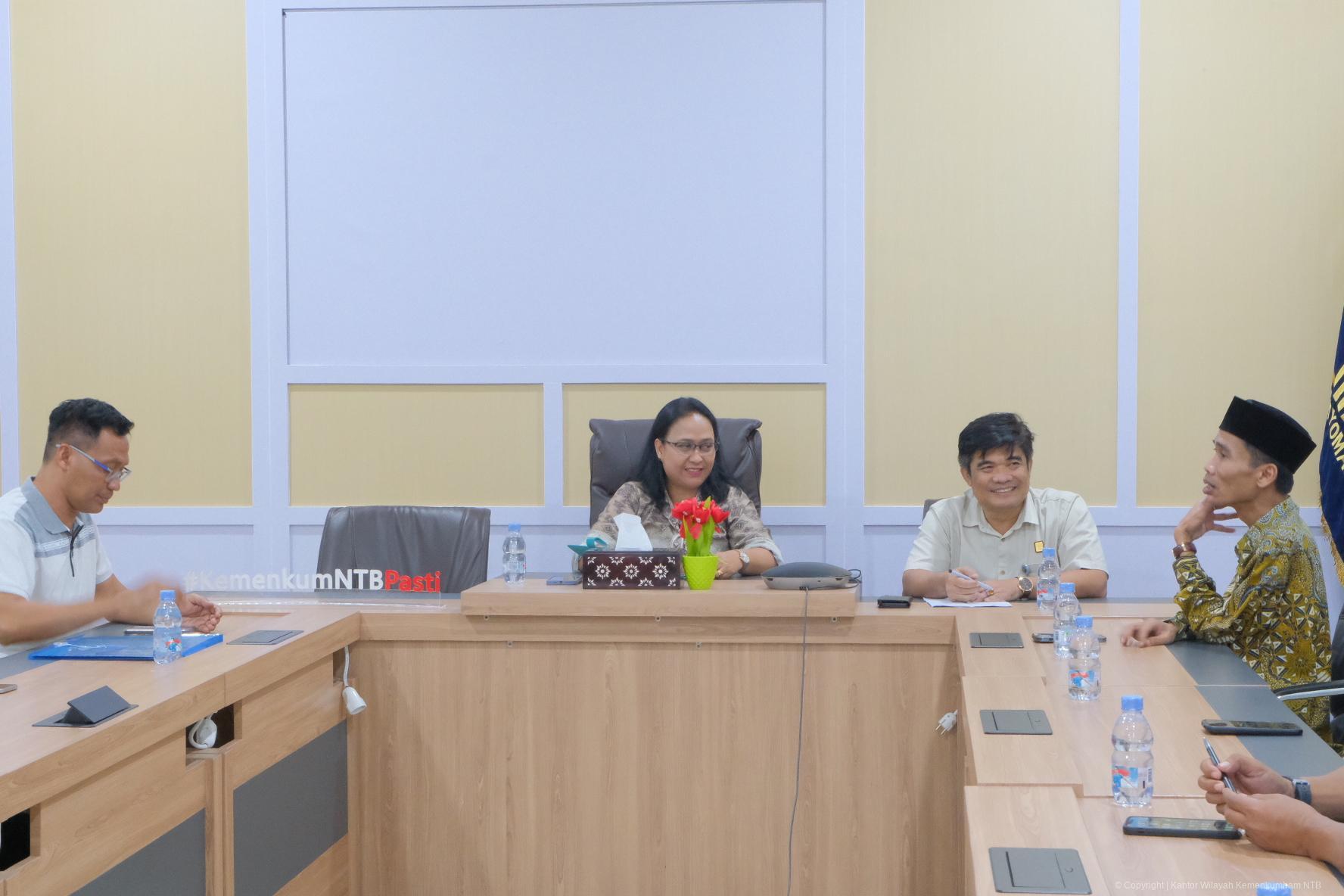 Dalam kegiatan tersebut, Kepala Kantor Wilayah Kementerian Hukum NTB, I Gusti Putu Milawati didampingi Kepala Divisi Peraturan Perundang-undangan dan Pembinaan Hukum, Edward James Sinaga, Kepala Bagian Tata Usaha dan Umum, M. Amin Imran beserta Perancang Peraturan Perundang-undangan Kanwil Kemenkum NTB Pokja Zonasi Kabupaten Sumbawa Barat.