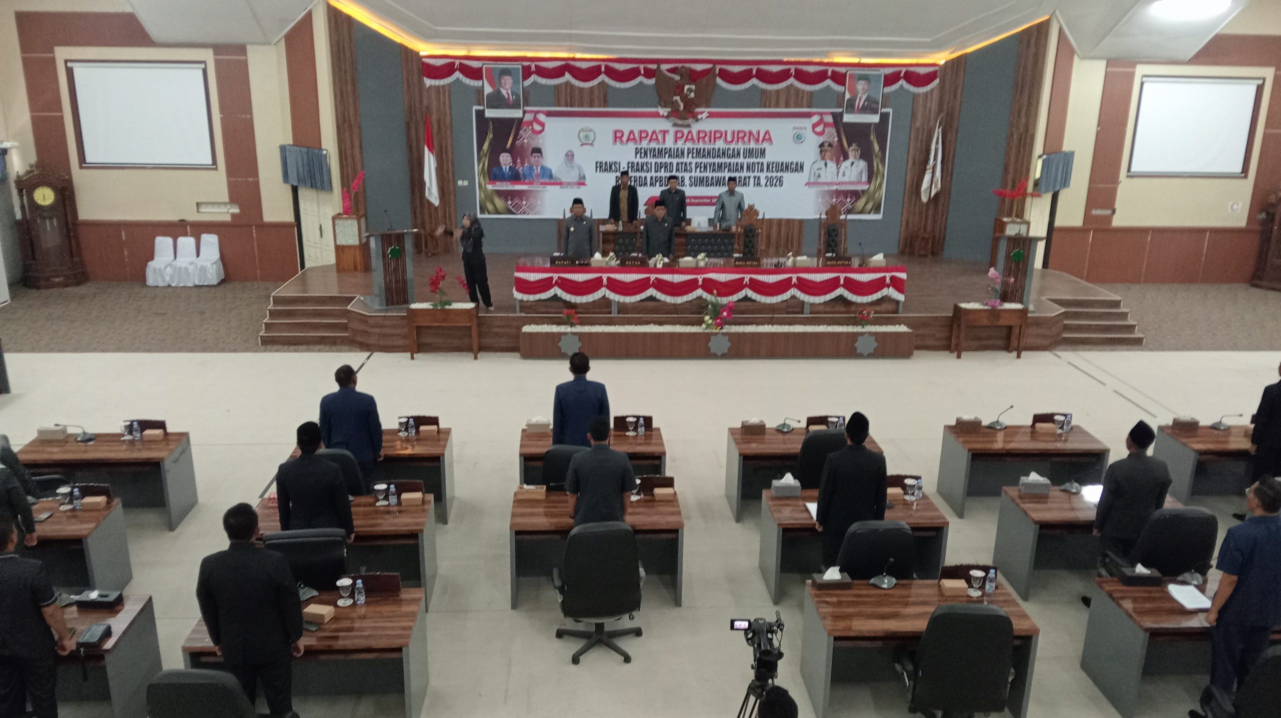 “Rapat Paripurna hari ini digelar untuk kita mendengarkan Penyampaian Pemandangan Umum Fraksi-Fraksi DPRD Kabupaten Sumbawa Barat terhadap penjelasan Bupati Sumbawa Barat tentang Nota Keuangan dan Raperda APBD Tahun Anggaran 2026,” urai Kaharuddin Umar.