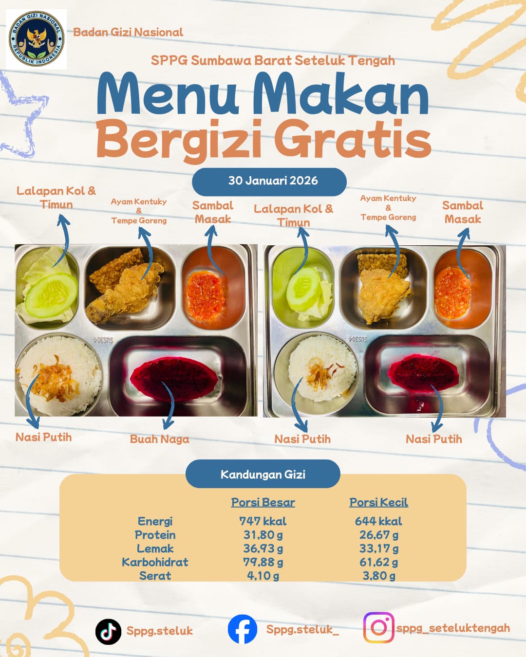 Sadiah menegaskan, langkah-langkah tersebut, menjadi bentuk tanggung jawab SPPG Seteluk Tengah dalam memastikan siswa menerima makanan yang sehat, aman, dan berkualitas. Saat ini SPPG Seteluk Tengah telah memiliki sertifikat SLHS, sertifikat halal dan sertifikat koki untuk 2 pegawai di ruang produksi.